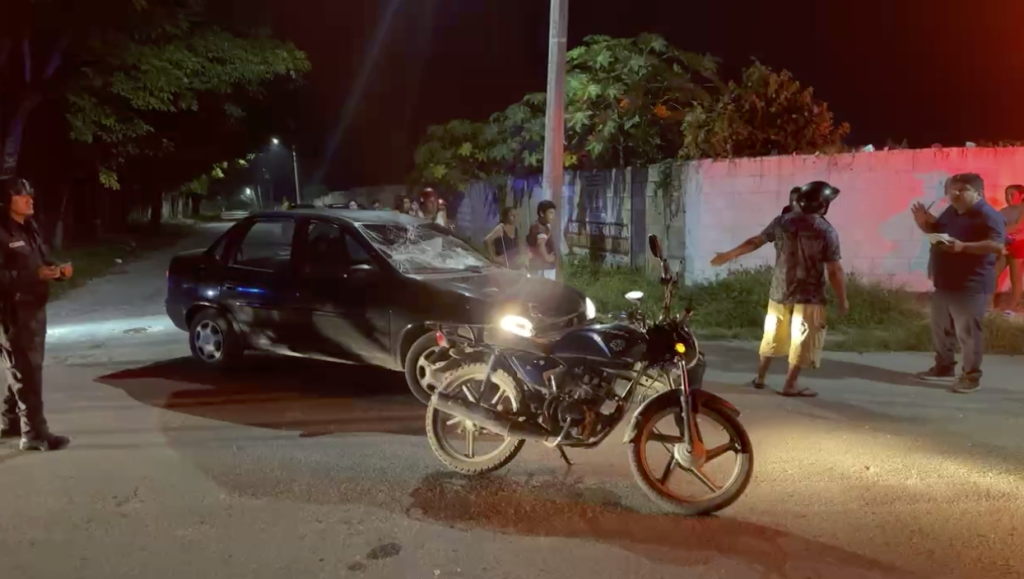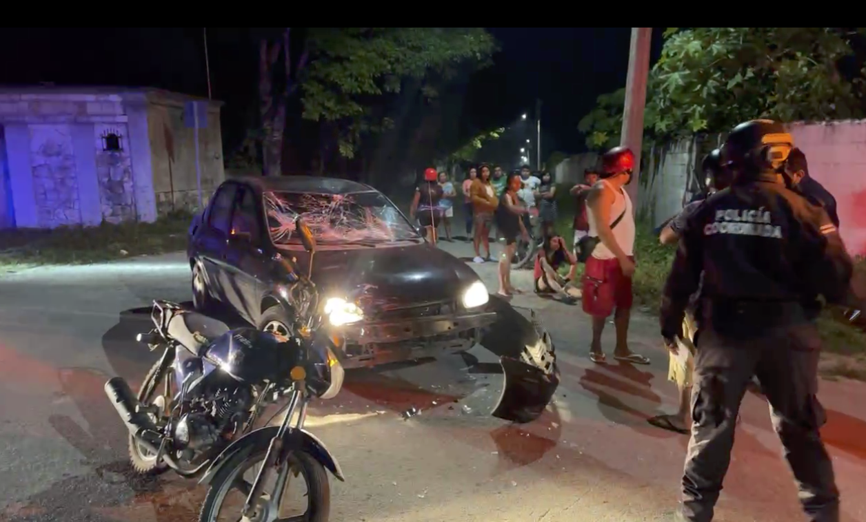 Ayer por la noche, en el municipio de Tizimín, Yucatán, se originó un accidente vehicular donde un Chevy de color negro chocó a una mujer abordo de una motocicleta modelo Italika 125 azul, cuando realizaba su cruce sobre la calle 58 por 29 de la colonia Santa Rita.
