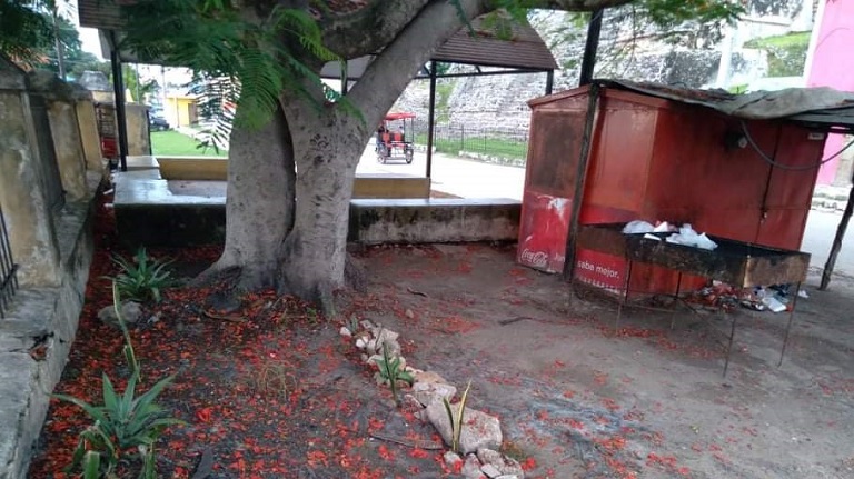 Todos los días hay restos de basura en áreas cercanas al atrio de la iglesia, producto de la venta de panuchos que se realizan en un puesto ambulante que lleva más de 20 años situado en el sitio.