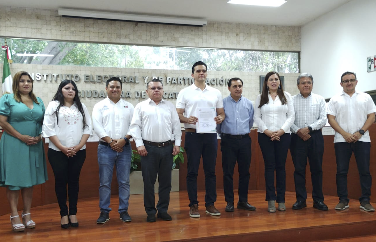 El consejero presidente del Instituto Electoral y de Participación Ciudadana de Yucatán, Moisés Bates Aguilar, entregó hoy la constancia de mayoría que declara alcalde electo de Progreso al panista, Erik Rihani González.