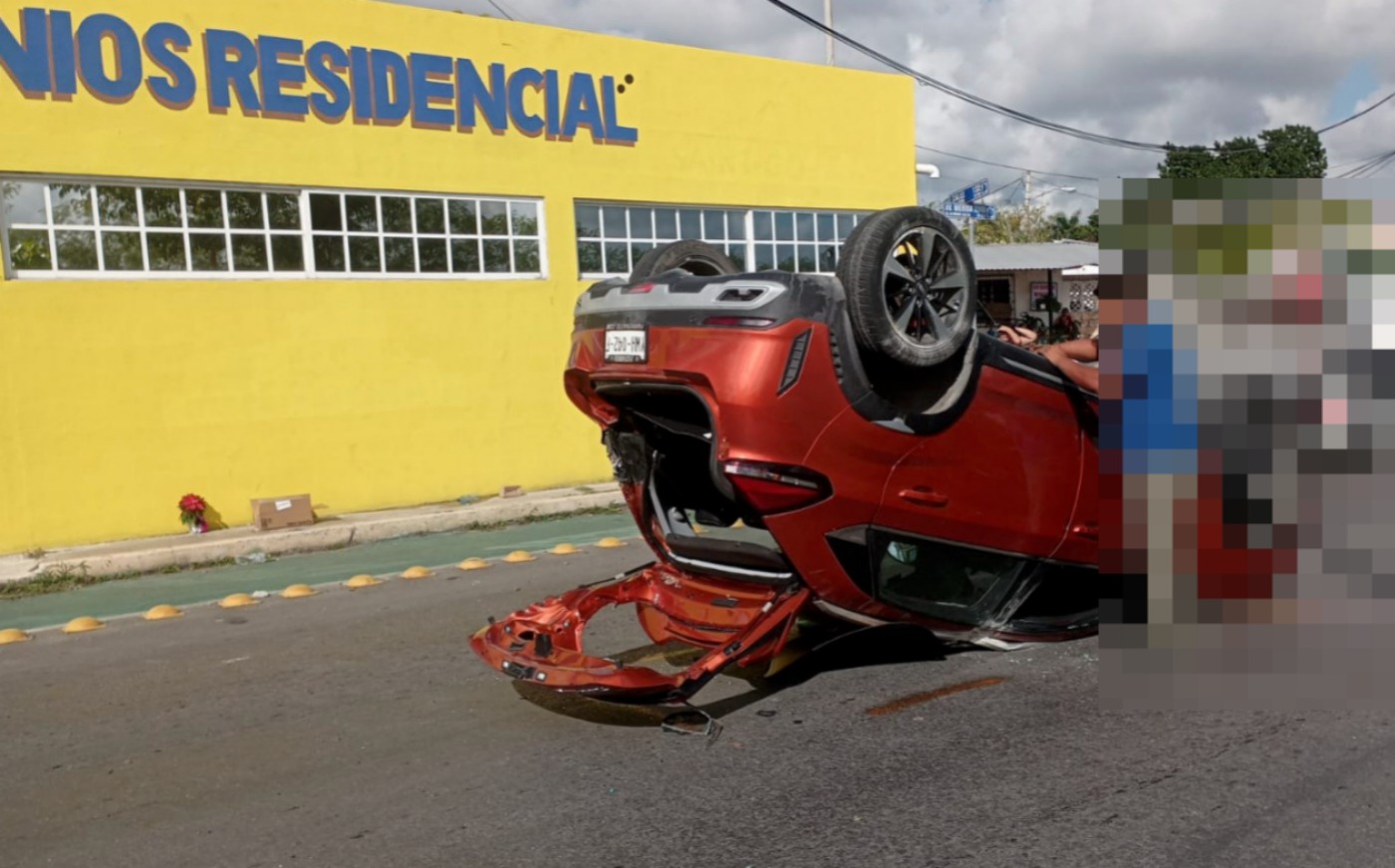 Este miércoles 18 de diciembre, en la famosa y transitada avenida 2000 a la altura de la colonia El Porvenir, de la ciudad de Mérida, Yucatán se registró un choque entre dos automóviles, el cual dejó como saldo la volcadura de uno de estos, donde, afortunadamente e increíblemente, no se reportan lesionados.