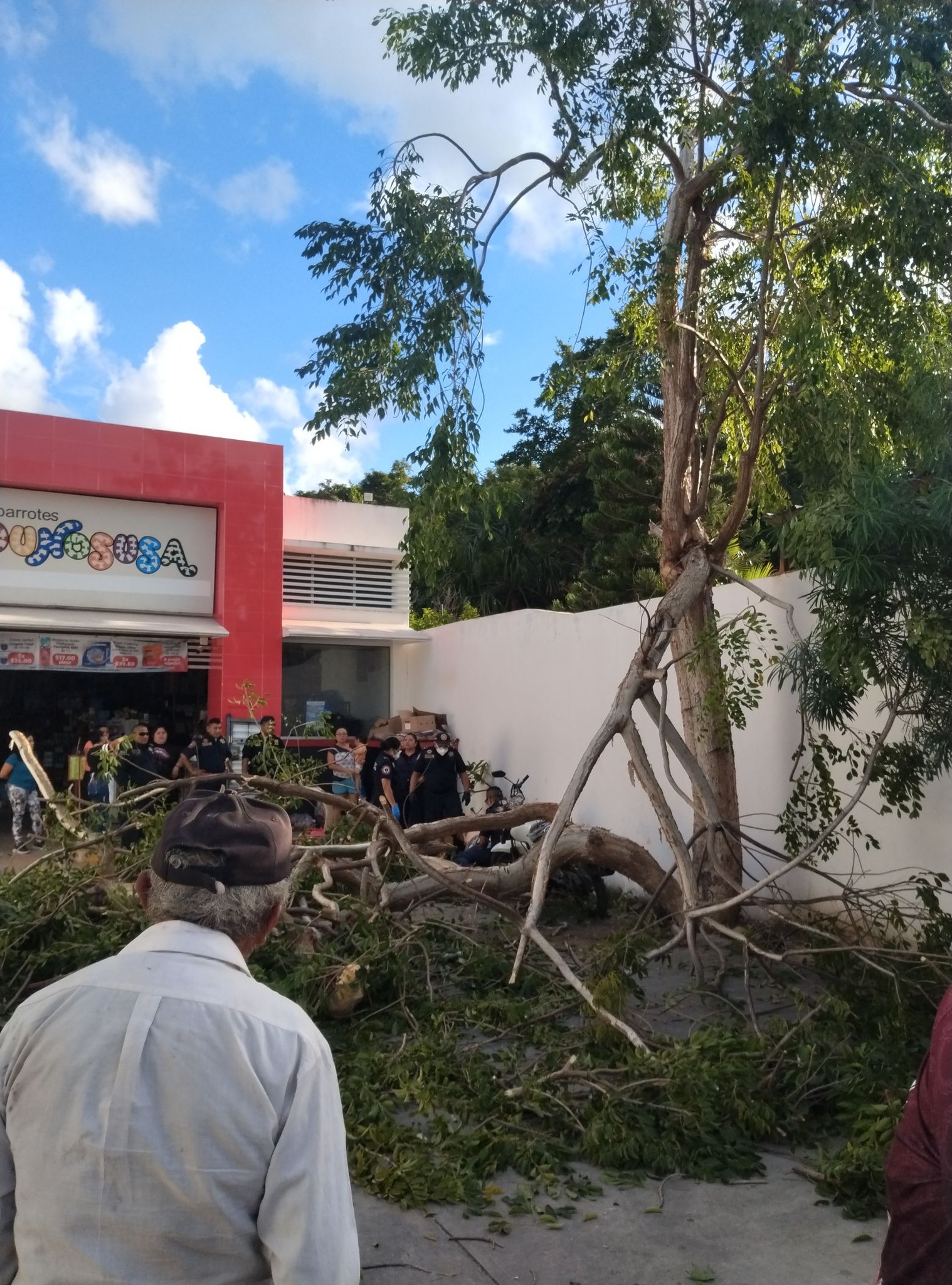 Un inesperado accidente ocurrió esta tarde en la calle 95 entre 46B y 48 de la colonia Santa Rosa, cuando un árbol cayó sobre un hombre que salía de una tienda de abarrotes.