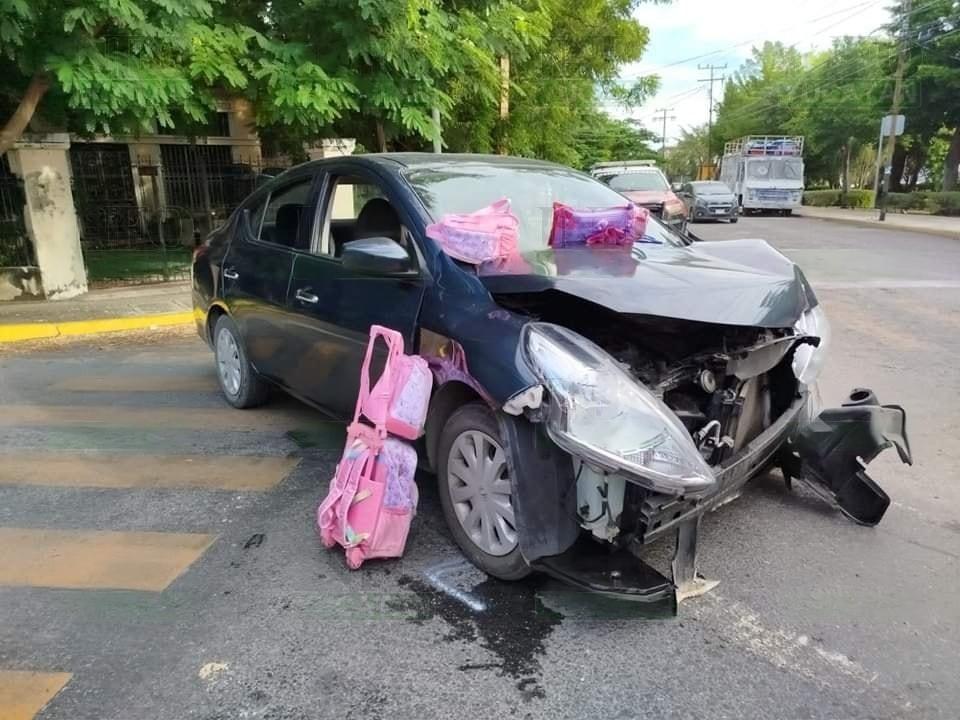 Esta mañana, en la colonia García Ginerés, de la ciudad de Mérida, se suscitó un accidente, donde un padre de familia fue afectado por la luz del sol y tras querer intentar llevar a tiempo a sus pequeñas a la escuela, chocó con una camioneta blanca al no darse cuenta de la señalización roja del semáforo.