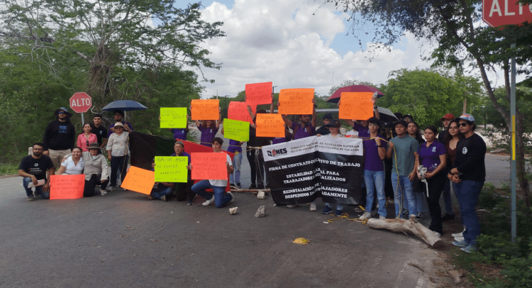 Acompañados por profesores, los alumnos bloquearon el acceso principal de la universidad, ubicada sobre la carretera Mérida-Tetiz, a la espera de ser atendidos por autoridades académicas.