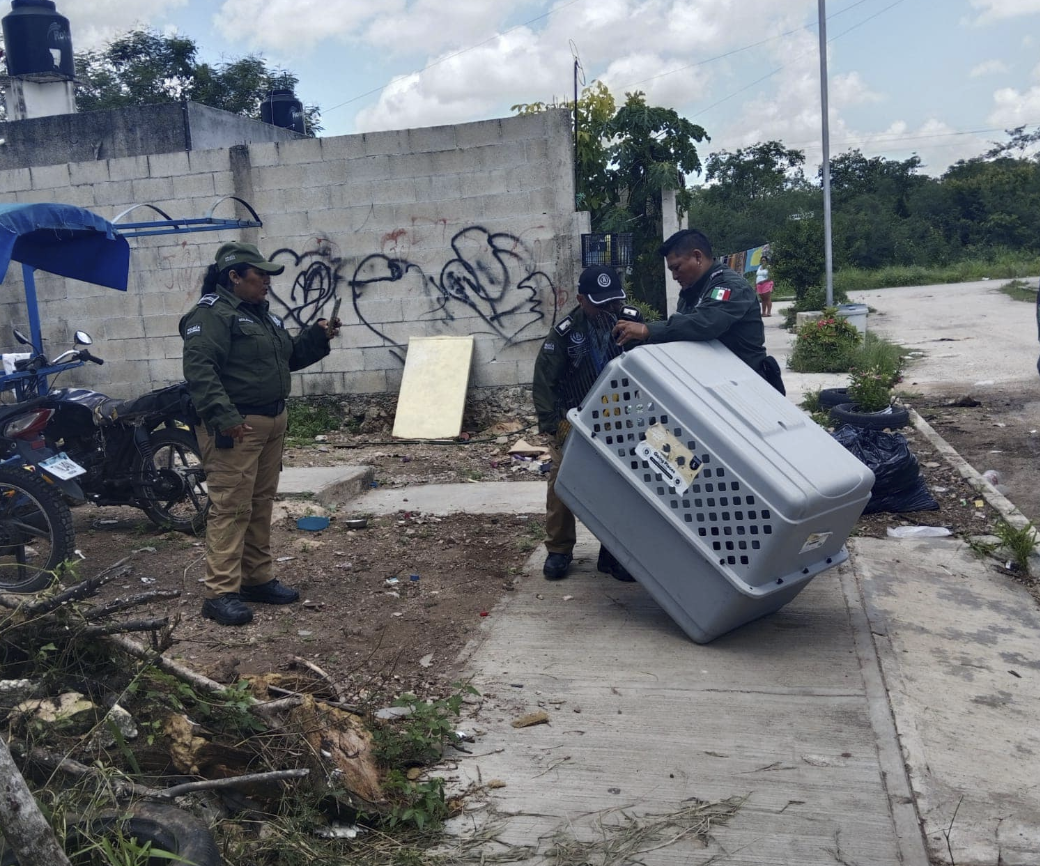 En respuesta a un reporte recibido vía telefónica y redes sociales, la Policía Ecológica de Kanasín acudió al domicilio ubicado en la calle 95 A por 20 del fraccionamiento Dzoyolá para recuperar dos caninos que se encontraban en un domicilio con antecedentes de maltrato animal.