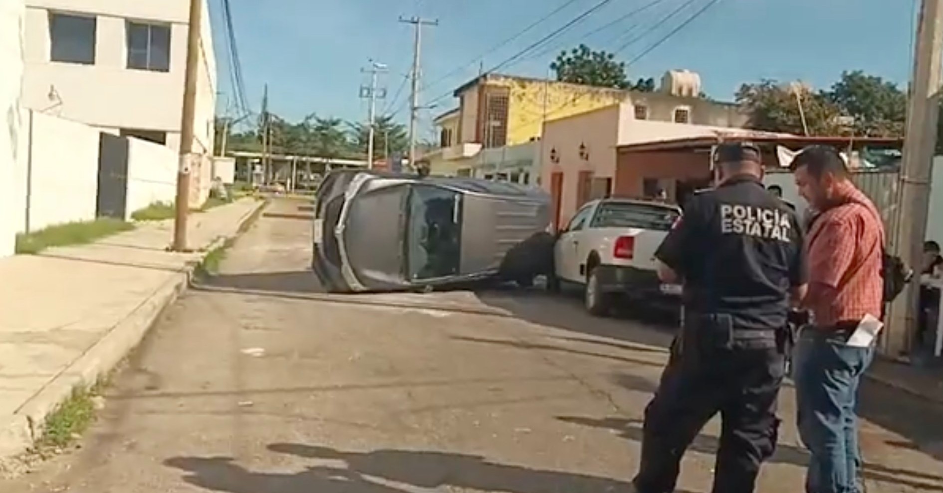 Tras el reporte a los números de emergencia, al lugar del accidente arribaron los policías y paramédicos de la SSP Yucatán para ayudar al conductor del auto gris, donde se informa que afortunadamente no hubo lesionados, solo daños materiales.