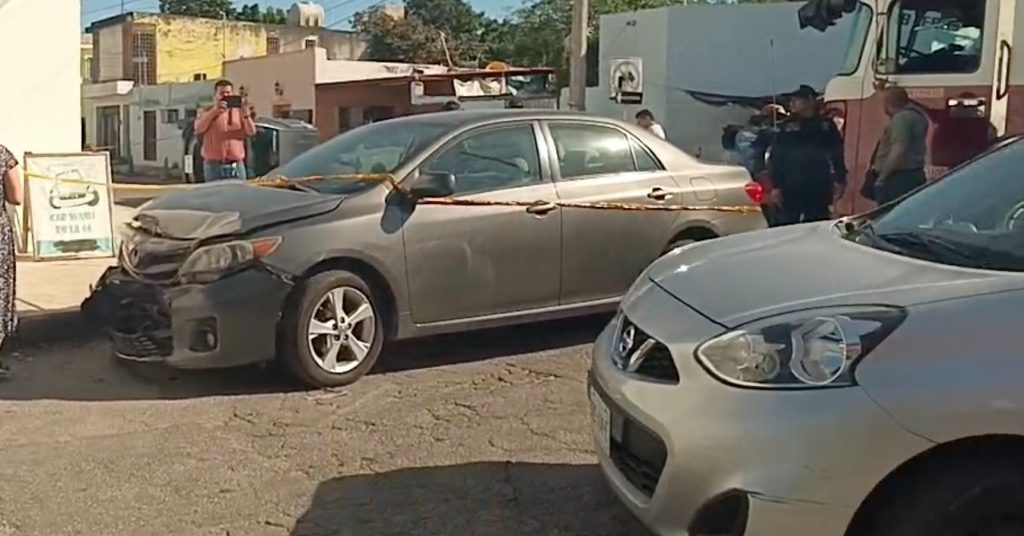 Ayer miércoles, 13 de noviembre, cerca de instalaciones del parque de la Plancha, se registró un accidente vehicular, donde un auto de color gris Toyota colisionó contra una camioneta al no percatarse de la señalética de un alto sobre el cruce de la calle 44 x 43-A del centro de Mérida.